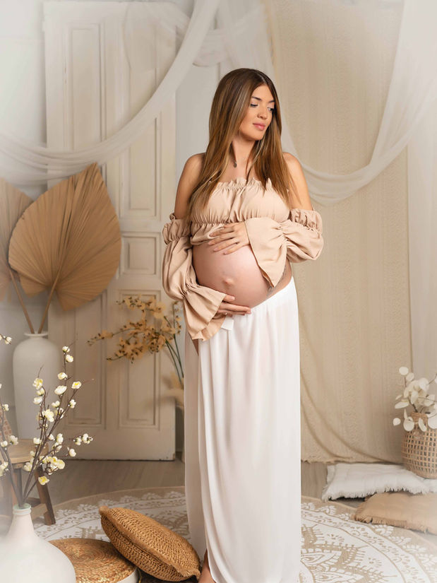 En nuestras sesiones incluimos todo el vestuario y complementos para la futura mamá.